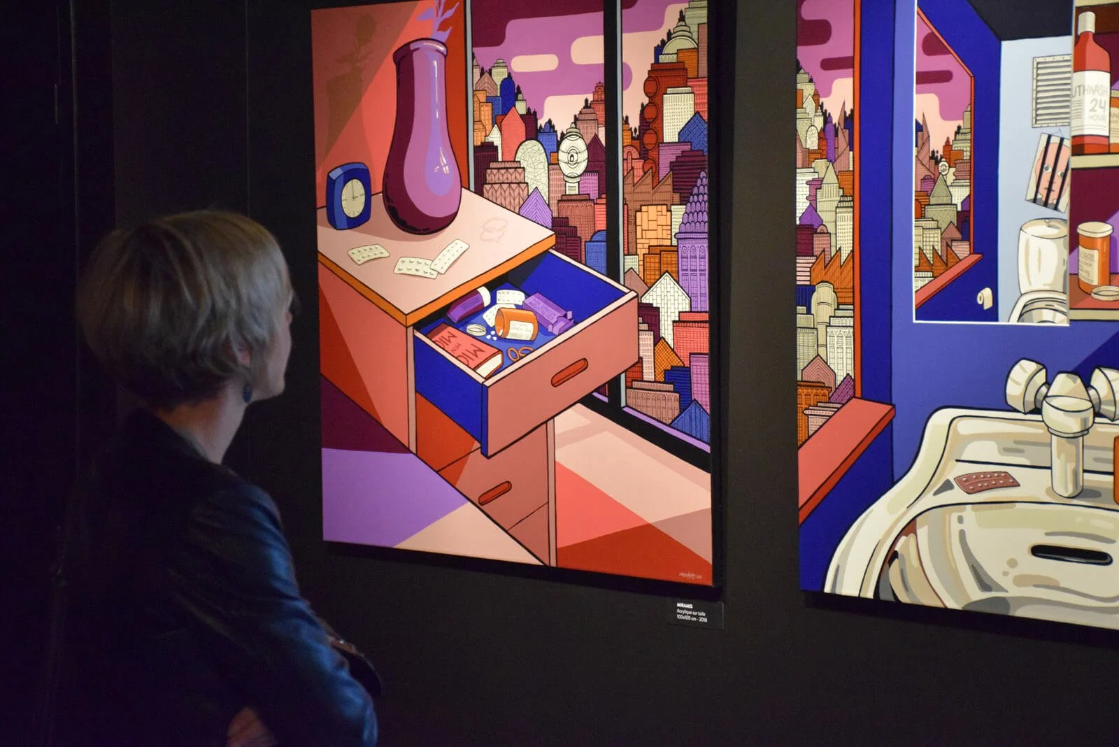 Kim A. Larsen – også kjent som SinnSykShit – er en urban kunstner fra Oslo/Norge som skaper fiktive, men gjenkjennelige bylandskap. Arbeidene hans favner veggmalerier, gatekunst og malerier, og er ofte preget av tydelige linjer, sterke farger og grafiske trekk inspirert av hans livslange fasinasjon for graffitikunsten.